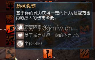 伤害降低效果是自身360码范围内敌人伤害减少10%(无论敌方攻击的是你还是你队友)。