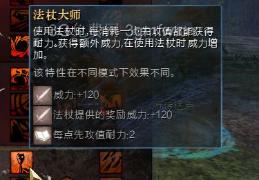 加威力,用法杖获得额外威力并且耗费先攻值时会回复耐力。