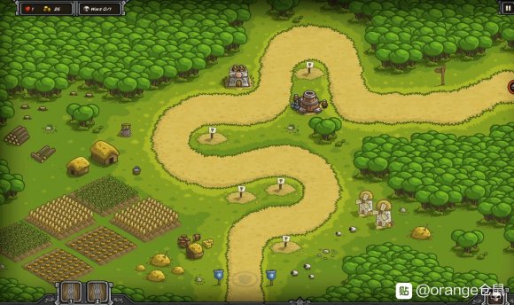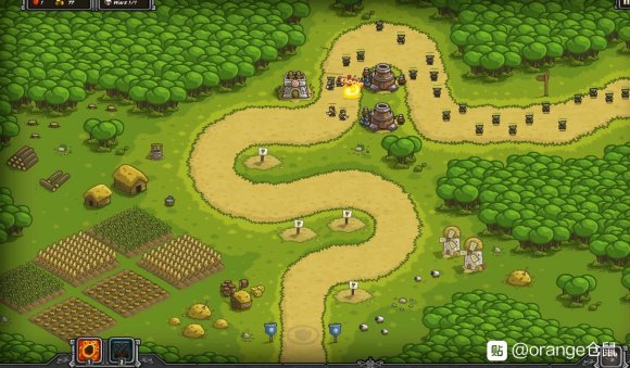 第一波9只狼。第二波极多哥布林,分为两部分,前一部分比较散,后一部分紧凑。打哥布林波次时,最好在前一部分放火雨,后一部分紧凑炮塔可以发挥作用。最后一波多只兽人,在后方建1魔法塔补刀。随着时间推移兽人越来越多,便可开始在下方建设魔法塔。将没有在工作的防御塔出售。