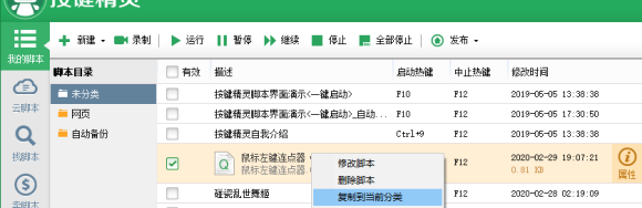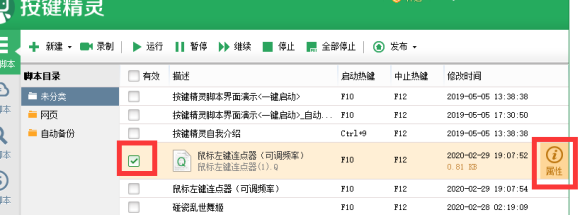 然后选中这个脚本,点属性,把脚本名字改成右键连点器,保存设置。(这里是为了区分左键连点和右键连点,以防运行错脚本)