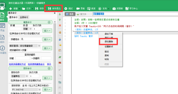选中(鼠标左键单击1次)右键点击语句删除,接着点击上边的保存退出。