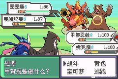 与真嗣对战:大嘴娃剑舞mega进化,发型鸟用勇鸟猛攻秒掉铁掌力士尼多王上阵,大嘴娃用突袭秒掉尼多王后被鸭嘴火兽直接带走,发型鸟继续勇鸟猛攻消耗鸭嘴火兽,忍蛙水炮秒掉鸭嘴火兽被圈圈熊臂锤秒掉,发型鸟消耗圈圈熊后也是被带走后,双斧战龙1v2虽败犹荣 带走龙王蝎,鬃岩狼人使用z招式尖石攻击秒掉雷电魔兽,锹农炮虫断头台秒掉圈圈熊。获得能力值查看器