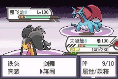 大嘴娃mega进化三次剑舞+嬉闹秒掉暴鲤龙,突袭秒掉刺龙王,暴飞龙带有道具无法一击秒杀反杀大嘴娃,忍蛙急冻光线补刀暴飞龙,Z招式水炮秒掉化石翼龙,急冻光线将快龙消耗到半血被秒杀,鬃岩狼人上场尖石攻击带走快龙