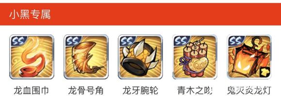 小黑黑龙套最佳配置:号角+腕轮,竞技场的话则是青木+围巾(中后期不推荐小黑跑竞技场,所以青木有s的就够了)