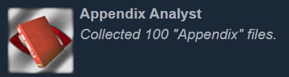 收集以下物品可解锁成就,可在暂停菜单的“files”查看