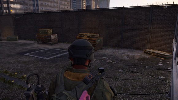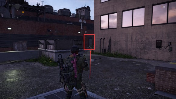 上到房顶后,将会看到打不开的门和后面的通风管道。射击下图方框位置的电箱可以打开这扇门。