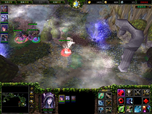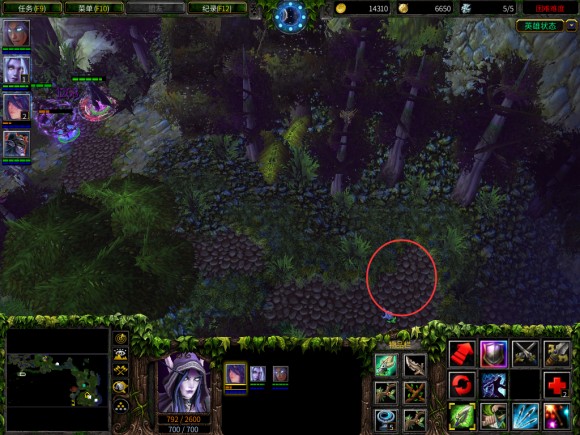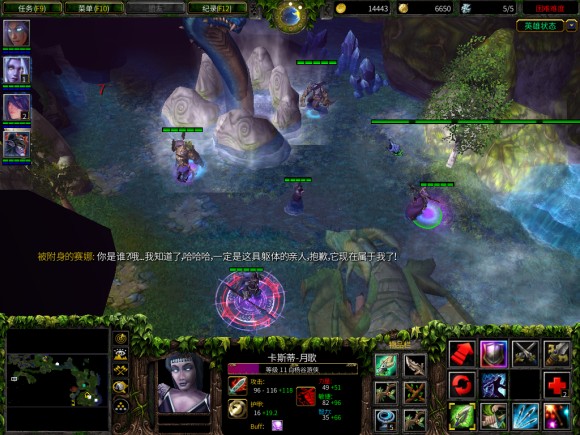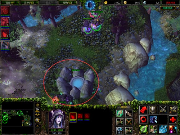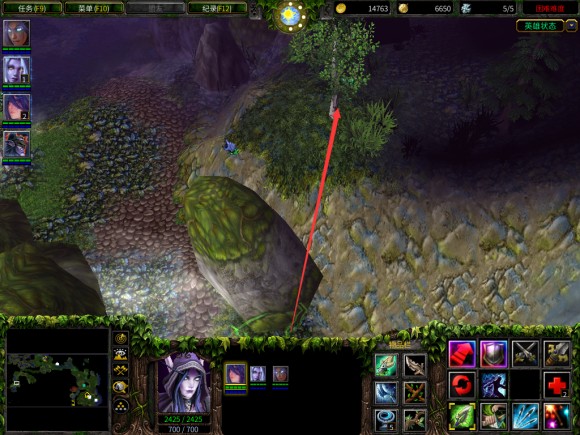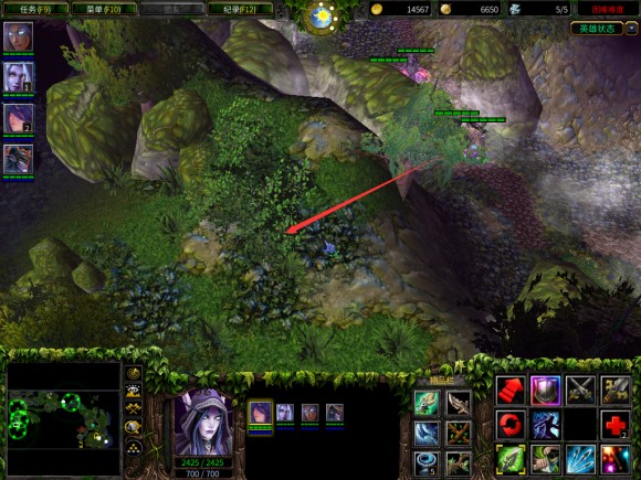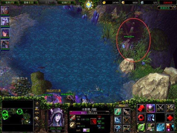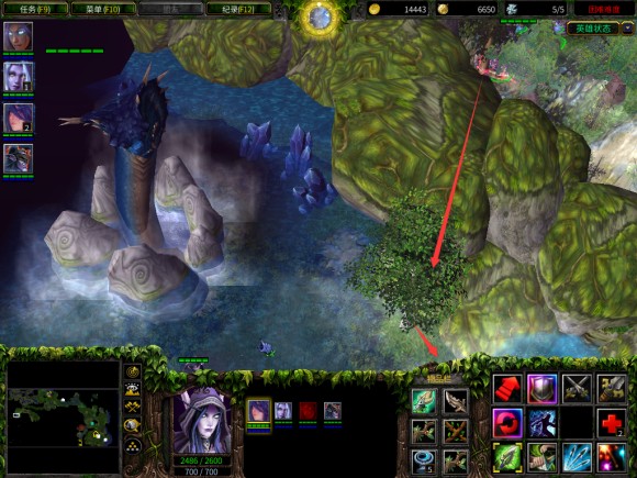 我们先往西勾走,这里注意辛杜给伊萨娜套盾,让伊萨娜先飞过来,会有狼人杀,然后这里是第二个溢出之水的收集点,下面还有树人记得用携带【森林之泪】的英雄补刀;
