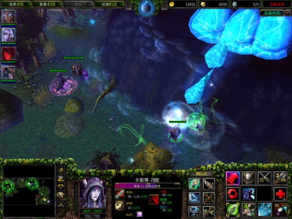 然后我们回到之前兽王战之前的浅水地方,利用卡斯蒂的R可以勾引到瀑布上面的莱姆,击杀掉落水之精华,也可以三个人都上去击杀;