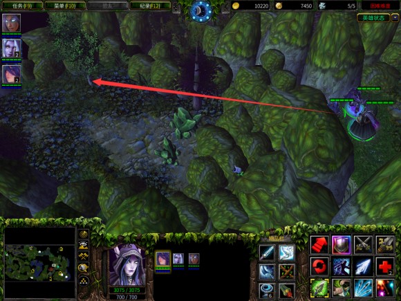 然后我们来到兽人营地左边这里,之前有很多箭塔的地方,往左边勾;