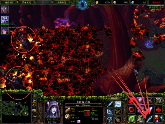 然后回到伊萨娜路线开局的火山口位置,发现多出来了两个火焰幽魂,他们的血量差超过一格就会回满血,所以可以利用卡斯蒂的E分裂箭来击杀;