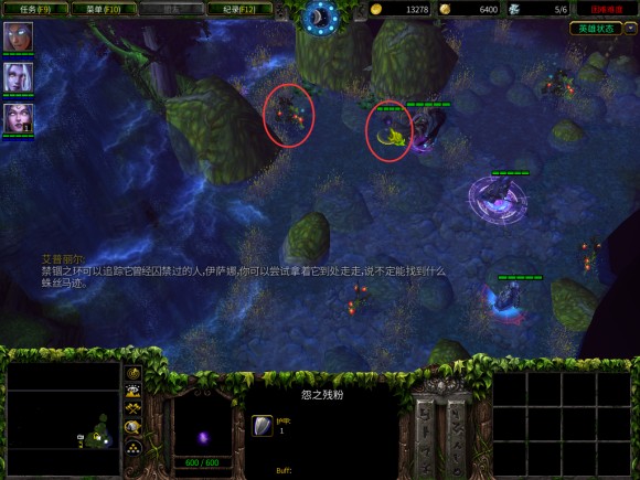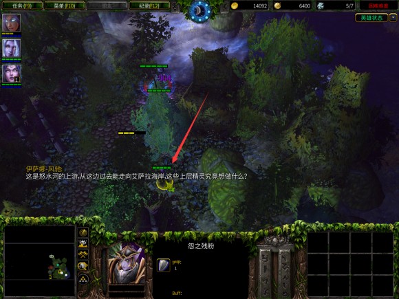 往河道走,击杀玩狂暴的水元素后在这边的坚固树木旁有第二个【怨之残粉】;