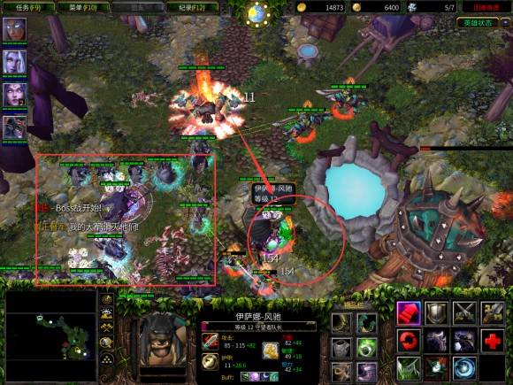 如图,我方部队会站成一个矩形,艾普丽尔和辛杜尽量待在矩形里面给盾和输出,伊萨娜利用W把兽王往红圈处拉,可以方便击杀苦工,具体的击杀方法可以参看综合版攻略,最后注意兽王2000+血左右时,控制衔接,加上输出技能秒杀,不然会插治疗棒,掉落【野蛮大斧】和【神力图腾】;