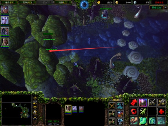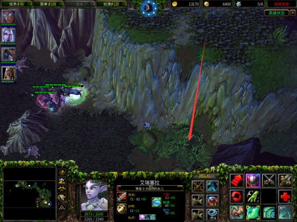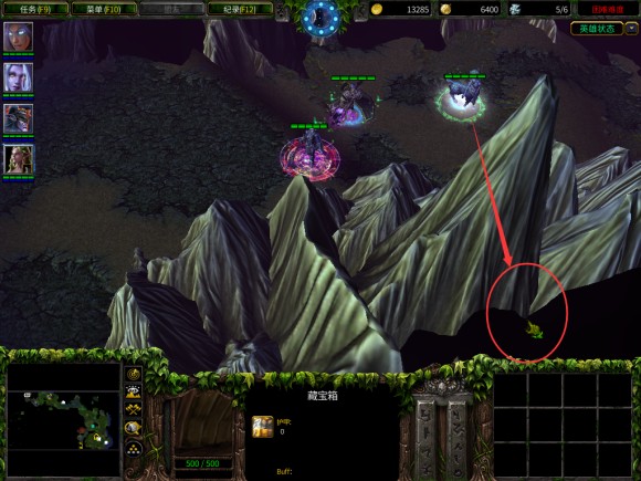 一路往里杀,然后路口往右拐,这个鼠标位置藏了一个【宝箱】,掉落碎屑,远程英雄A掉,然后可以利用ESC的一键拾取聚集到身边来捡。