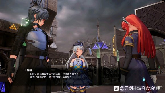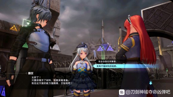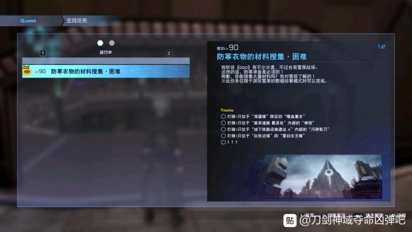 此时剧情要求返回城镇,前往店铺遇到红叶等人,受到邀请一起前往被暴风雪覆盖的区域,//////图一为剧情中,阿尔法不在时的情景。//////看到图四时,该剧情对话无法跳过(手慢点!!)此时剧情进入可分支状态,//////如图五,上下两个对话分别为“普通任务”“困难任务”两个任务奖励有所不同,这也是为什么DLC3和DLC4需要打两遍才能拿到全部奖励的原因,一般情况下,第一次全选普通任务,第二次全选困难任务 即可打成全奖励及真结局