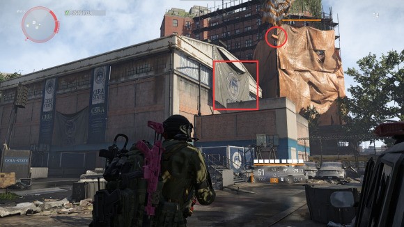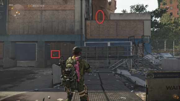 来到上图位置,环顾四周寻找带有CERA标志的仓库,圆圈处为空投箱,有兴趣的可以去捡。