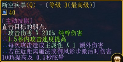 特殊效果:如果贴脸近身释放Q技能,或者在开启『E技能 御风影步』的1s内释放Q技能,将造成2倍伤害(也就是攻击力*4的纯粹伤害)和0.5s的眩晕。
