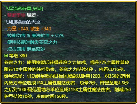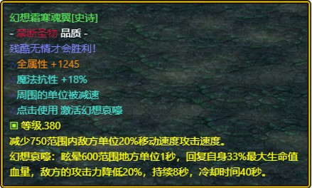超高的全属性能够提高幽人的血量和回复能力,18%的魔法抗性也十分撑肉,还有40s一次的主动加血,生存能力爆表。