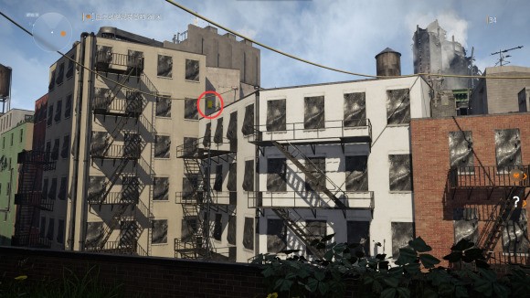 通过观察,稍微向左偏一些的视角会出现黄色电箱一个。