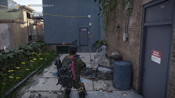在垃圾堆和旅行箱中间的门是可以互动的,按F互动开门。