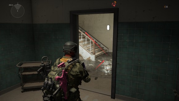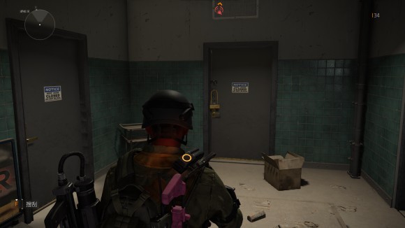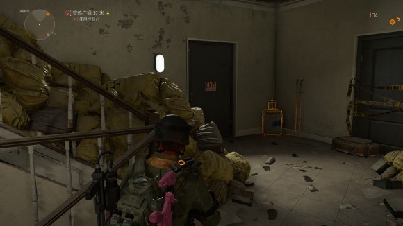 前往框住的门,到达后请面朝外,紧贴门板站立,