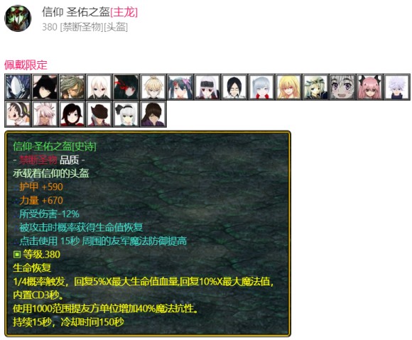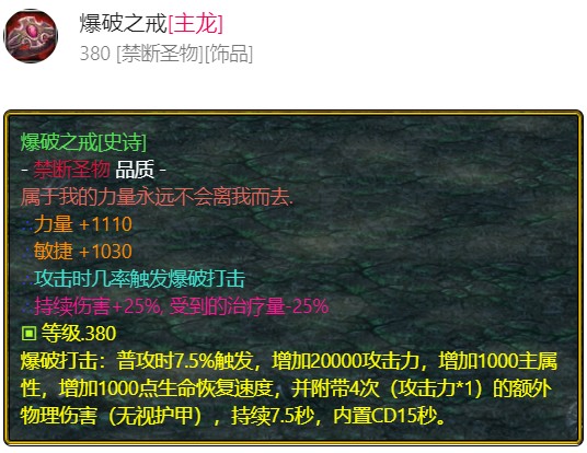 选择比较少。圣痕天使环都是粉末装,二选一带到异端就行。对有回复手段的狂战而言高护甲短cd的天使环会更强一点。