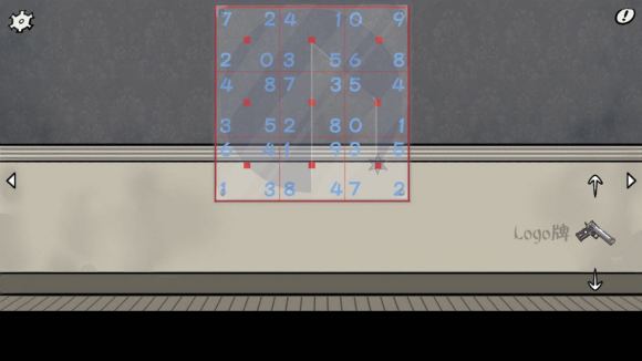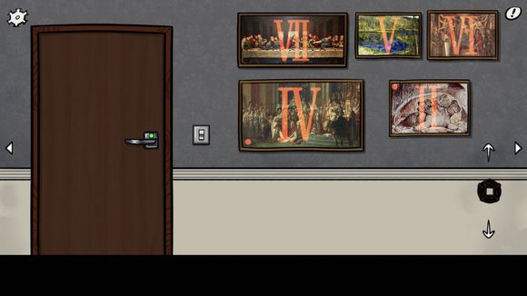 点亮的监控上要输密码,这个密码要回楼上用神秘护符看那些画,会发现上面有罗马数字一二三四的画的某个角上会有一个小点,小点对应投影那边代表被点亮的监控的那个方格四角上的四个数字,而画上的罗马数字是它们的顺序,这样就得到监控屏的密码.