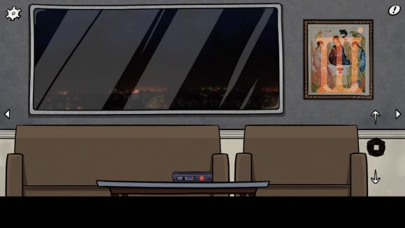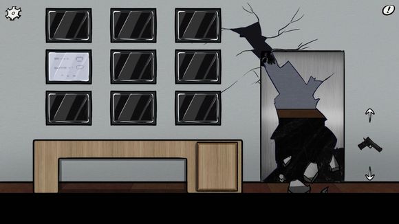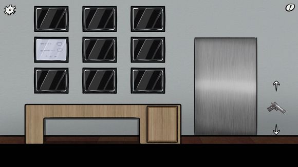 出门上楼,进房间,转到有投影的那面墙前,会有个人用枪指过来,用手枪打死他,然后就通关true end了.不打死他会是死亡结局.