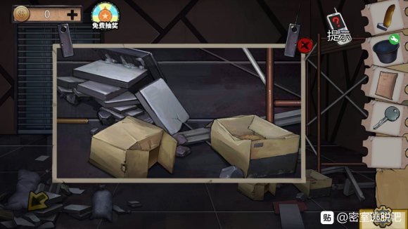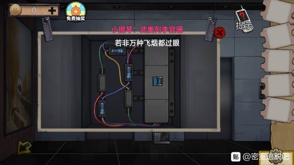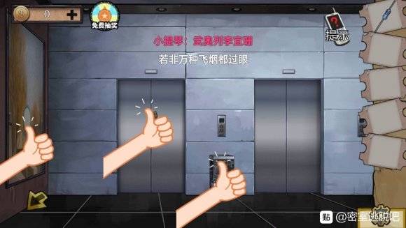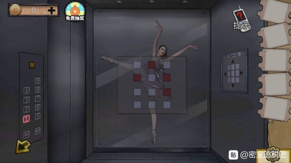 电梯上获得剪刀 剪开左边油画 获得那啥啥 和电阻 用那个啥打开电梯按钮