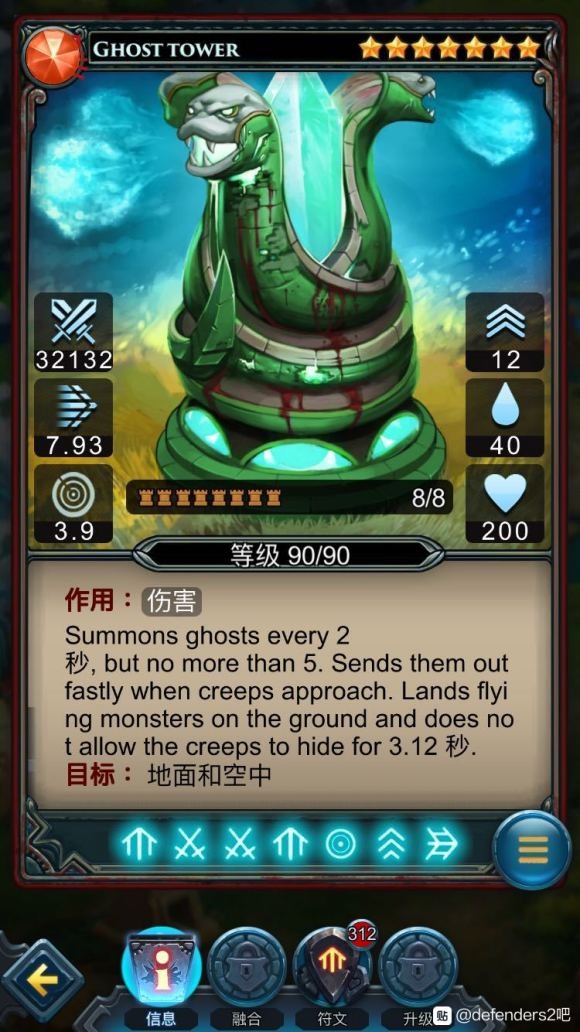 精神塔升级版,可建造在怪物行进的路途中,能够攻击隐身的怪物,符文搭配主堆伤害1射程即可。
