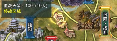 1、十人血战天策的入口,想必很多人都知道在洛阳·战乱和天策·战乱之间的过地图点,选最后一个。但是,十人血战天策的神行点可能就人不知道了。我曾经见过在95年代最后狂刷挂件的那几个月,有人写了篇单刷男女神攻略,男女神都单刷过了。然后开篇教人飞天策·战乱药师观的。正确的神行点是在世界大地图洛阳·战乱左边的这三个小房子。
