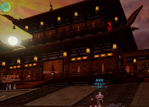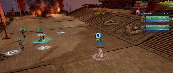 该傻瓜方法,利用的新CD第一次开怪,在清了4波小怪下P的时候,杨宁会再次开启嘴炮杀,女神也会开启狗粮吹师模式,进一段剧情。该剧情同样只会出现一次。当看到剧情杀,安庆绪下令:放箭!杀死台子上区域外的小怪的时候(这就是留着杨宁右侧小怪的原因,看到他们被老大放箭杀死就是信号),什么都不要管!直接扶摇+聂云,跳到杨宁右侧的屋檐上。(如图⑤号点处,也是本层第一张图的位置。)