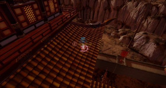 下面刷出什么小怪,以及身上的身不由己DEBUFF,什么都不需要理会。只需要在看刷出来断罪舞者有没有拉到仇恨。如果断罪舞者没有被自己拉到仇恨,而是在打杨宁的话,可以从屋檐上上走出来一点点,千万不要下屋檐,看到断罪舞者朝你的方向走过来,就可以回到房屋后面了。