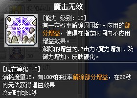就放个光效图,效果为解除boss身上带的增益(一般是皮肤硬化,就是打过去全是1的那种),持续只有22秒,因此如果不能在这期间带走则需要预判boss何时开始发动硬化(如果boss已经发动技能则此时再使用魔击就无法解除效果了)。一般也放不到键盘上