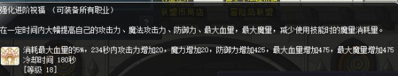 1级buff,加20攻击的小增益。新手往往会认为祝福20攻比战斗指令好,实际上后期某些技能多的职业格子不够时都是舍弃祝福而保留战斗命令的,毕竟指令带来的综合提升远高于20攻击的加成。