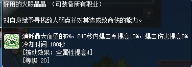 火眼,同样由弓手系职业贡献而来,因此弱化的也称作假眼