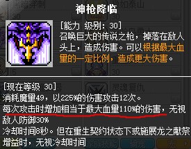 到了四转,主攻技能神枪降临更是描述上直接随着hp增加伤害了