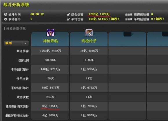 下面来看常规buff加上圣火提升血量后,神枪输出情况如何