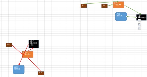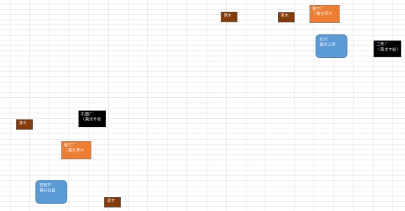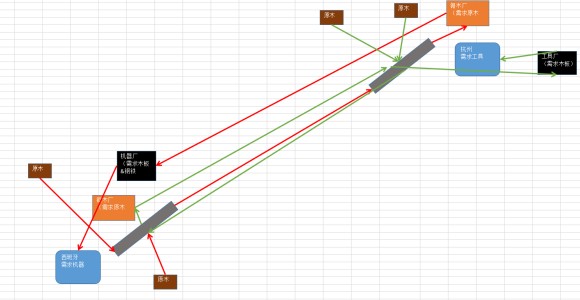 于是我搞了一个原木-木板-工具&原木-木板-机器的全产业链互相运输,一张图放不下,画个简图解释一下。