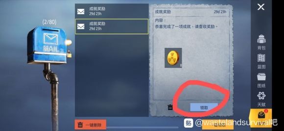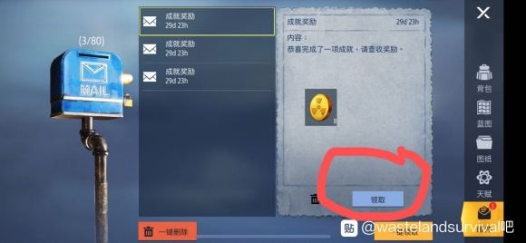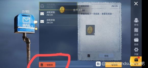 卡金币bug,领取三个邮件,在蓝图那里点开(蓝图点开重要的事说三遍蓝图,蓝图,蓝图)去地图外面卡bug不会饿死渴死,点进去第一个邮件点击领取,再点击一键删除,第一个邮件就被删除掉了,点进去最后一个邮件,一直点击领取就好了,