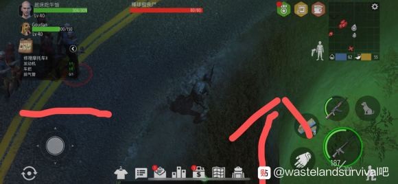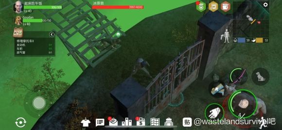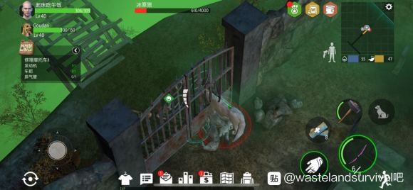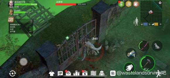潜伏顺着上面靠墙走,这里有一只蠕虫丧尸它死了会掉几只伤害很高的虫子,掉出来的虫子要用远程打不要被近距离打到,抓冰原狼要准备石头,近战还有麻醉弓,在这个门外面用墙是打不到的,但是可以用石头或者手雷把它勾引过来,在门外面卡位置打它,它会在一定时间内就回40血,所有武器伤害不能太低,最后打到六七百血就可以抓了,有了冰原狼就不用怕尸潮了