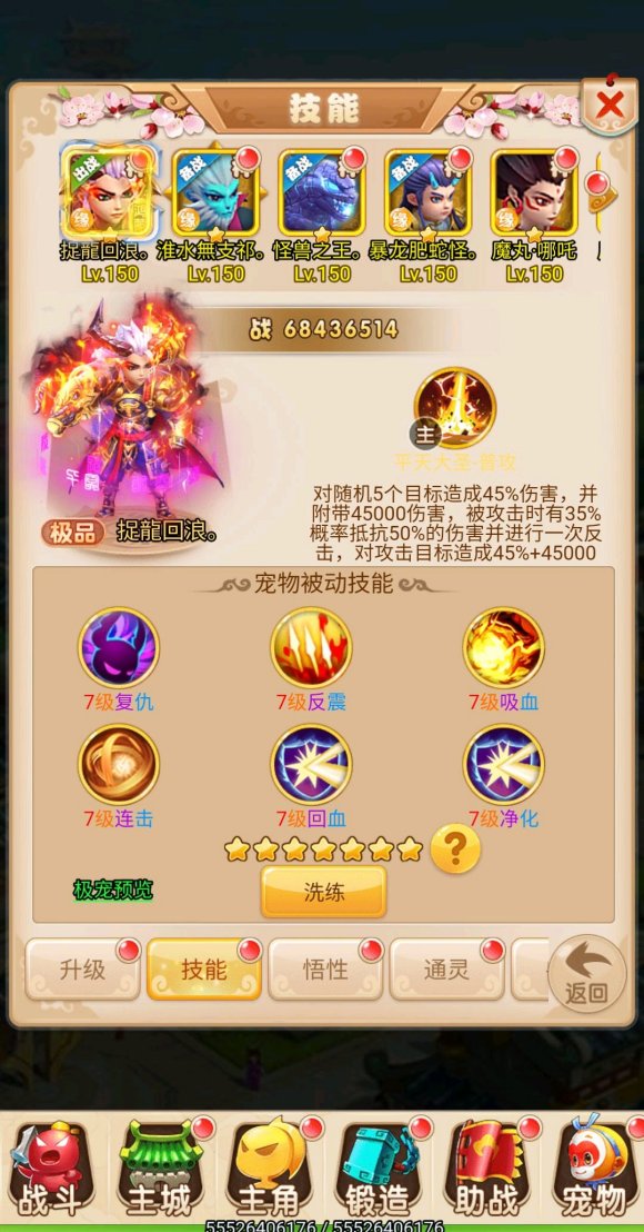 宠物是平民玩家最主要的面板攻击来源,激活的越多越好,包括激活升级还有洗极品都加不少攻击,宠物技能如图就行,为什么不洗那些速度暴击攻击因为都是只加宠物自己的,灵童御灵技能也是如此,而且很少,没必要,收益太低