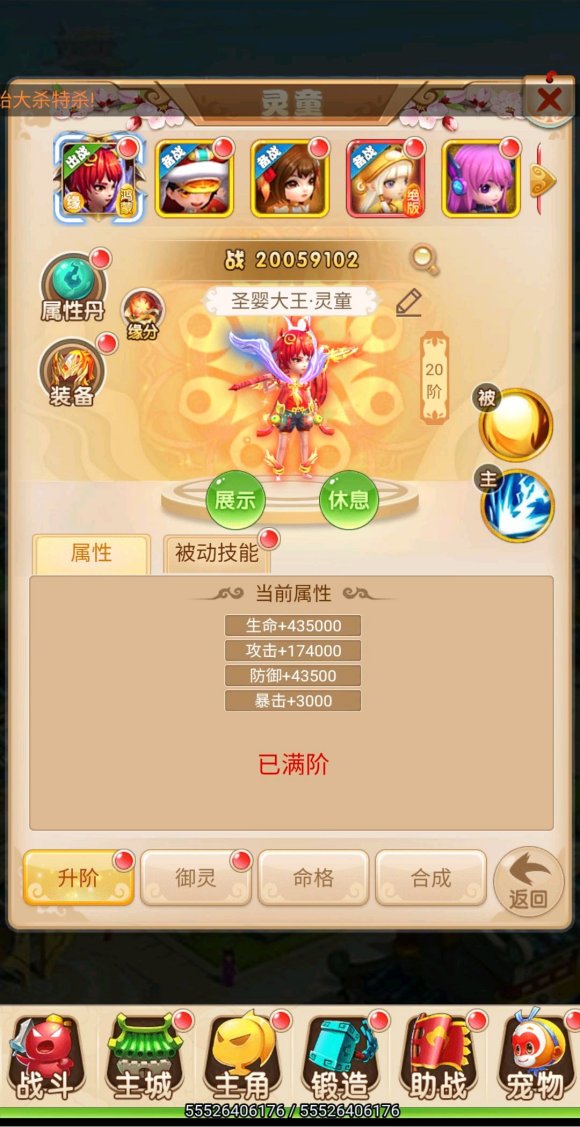 一定要有一个灵刃一个轩辕,并且升6级,技能是灵童增伤减伤30%,有用