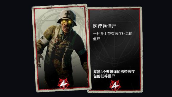 携带着医疗包的僵尸 穿着接近医疗士兵,踩碎他的尸体来逼迫他吐出医疗包治愈你的伤势。