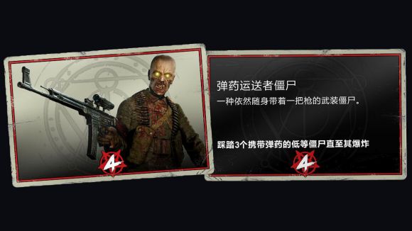 拿着一把mp44突击步枪或者c96手枪,身上和头盔上都携绑着大量弹药的僵尸,会肆意挥舞着武器射击或者朝着你射击。踩碎他的尸体让子弹滞留在地上或者捡起。