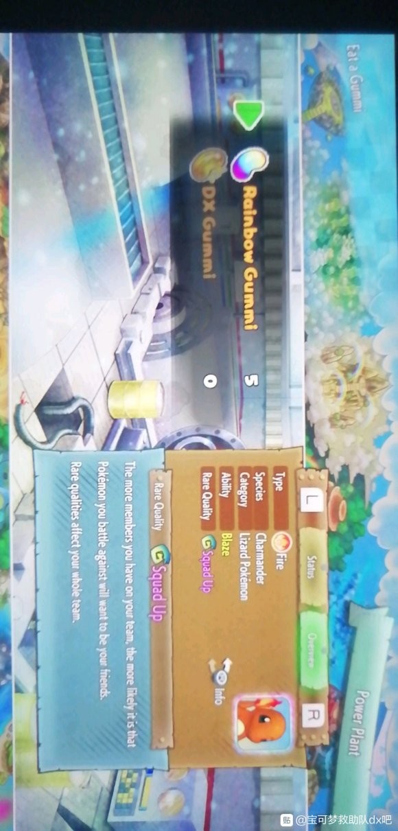 现在你可以进营地了,首先就是糖,有普通的彩虹糖还有稀有一点的金色糖,糖可以随意增加一向能力,并有一定概率洗出一个特性,特性我以后会有专题来讲,不过在这里我推荐friendly 和 squad up,因为我是个收集狂,这两个都是提高收服宝可梦的特性。