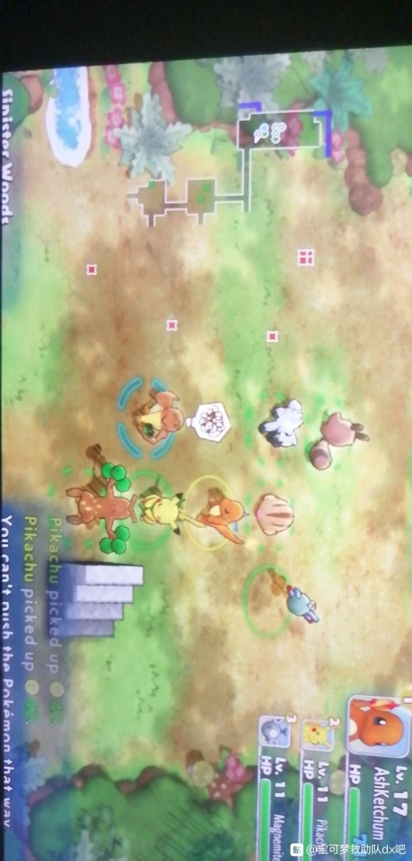 从这关开始会随机遇到一些这种要饿死的宝可梦,给个苹果就能骗走,这个纯看运气出什么,我出个御三家,还有小班,大奶罐这类的。这种给什么苹果都可以,给个tiny apple就可以。