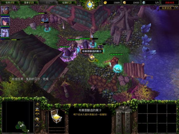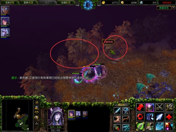 同时下图左侧有个小精灵商店,右边有泉水可以恢复状态,如果想完成成就【挑战极限】就不要喝泉水了;合成公式请参考综合版攻略,此时可合成【生命之沼】(合成看你个人选择,团队加潜力值比较少,但是光环效果不错)、【月光】(在第七章的结束时候买一个魔法护符,回去看了一下,我好像忘记了写。。。。)、【精木护甲】;