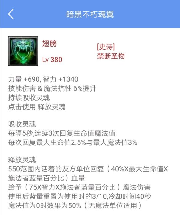 翅膀:推荐暗黑不朽魂翼弥补生存上和恢复能力的不足,或者你自己操作自信选择暴毙的星辰闪耀圣堂之翼(刷新翅),同时刷新翅也是四大阶段最便宜的翅膀,个人更推荐前者