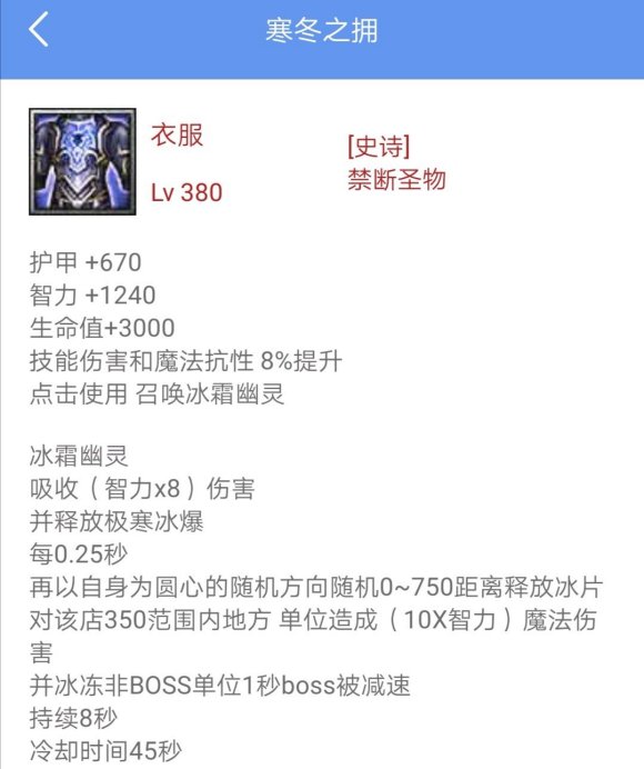 衣服:升级为寒冬之拥(大冰衣),推荐追梦一个女巫美狄亚法衣(美狄亚)增加自己的输出能力