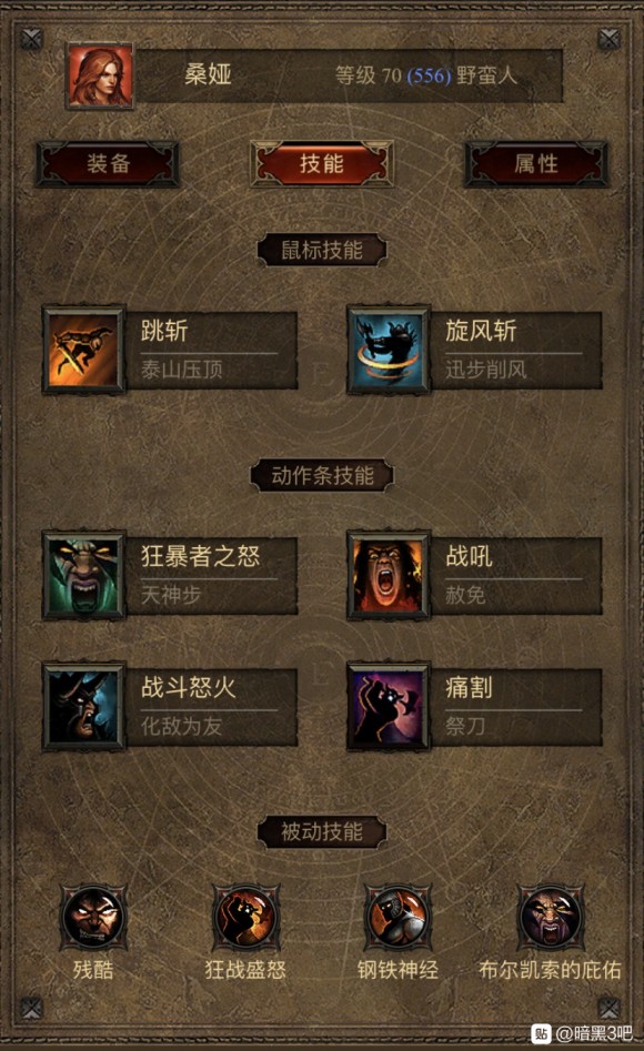 2.技能和符文主要以加速为主,狂暴者,疾奔(加速符文),战斗怒吼(加速符文),然后带一个跳斩,有些地方可以跳过去省一段路,也可以带狂暴冲撞,按自己的习惯来。